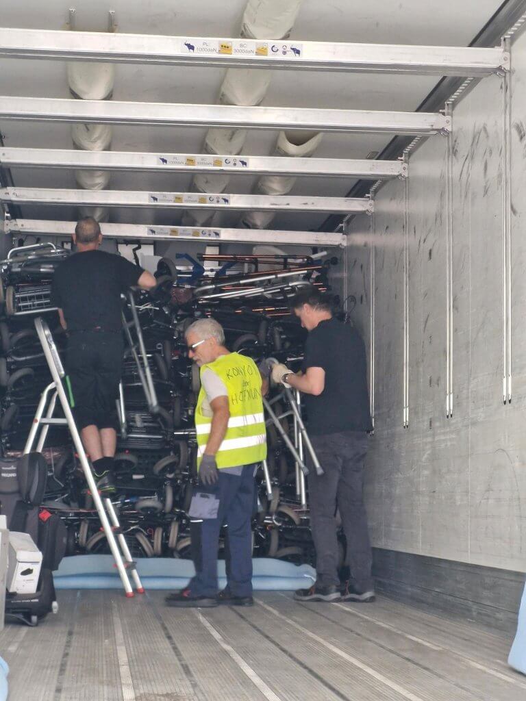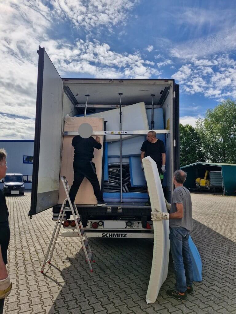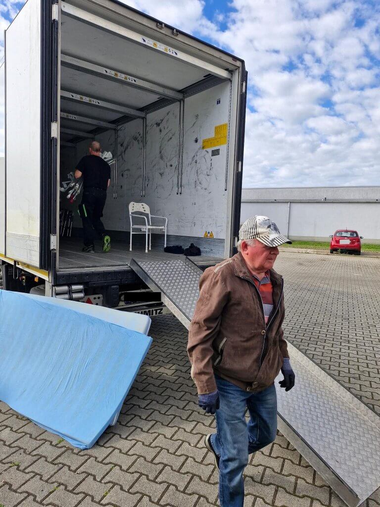 Die nachfolgende Bilderstrecke zeigt die Beladung. Offensichtlich sind alle hochmotiviert. Das führt dazu, dass der LKW in rekordverdächtiger Zeit beladen wird.